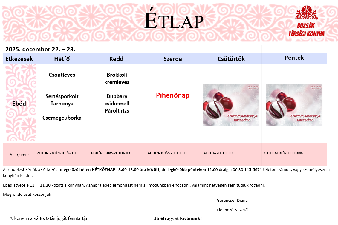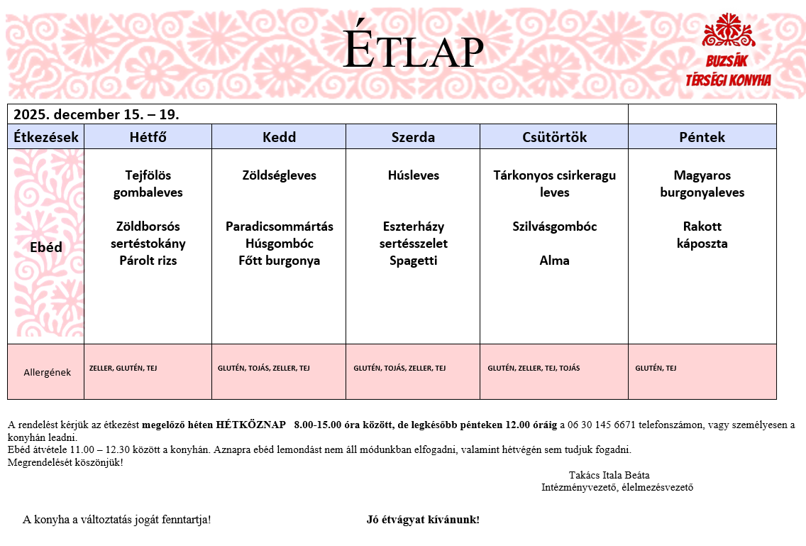 A Buzsák Térségi Konyha kéri azon étkezőket, akik személyesen mennek el az ebédért, hogy a KONYHA ÉPÜLETÉBE NE LÉPJENEK BE, mert az TILOS! Az ajtónál található csengő azért van, hogy jelezzenek a konyha dolgozóinak, akik ki fogják adni az éthordót az érkezőknek. Köszönik a szíves együttműködésüket! |